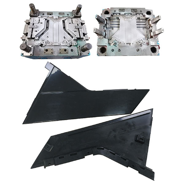 Formsprutningsform för vänster och höger ytterpaneler till bilar används för att effektivt och i matchande set tillverka vänster- och höger ytterpaneler till bilar inom samma formdesign eller i parade formar, inklusive dörrpaneler, baklucka, stänkskärmar, sidokjolar och andra utseendemässiga och strukturella komponenter.